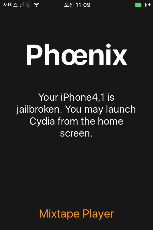 ** 처음 탈옥 진행 시, Cydia가 설치되는 것으로 탈옥 여부 확인이 가능하지만 재탈옥의 경우, 이미 Cydia앱이 설치되어 있으므로 실행 가능한지 확인하면 확실하다.