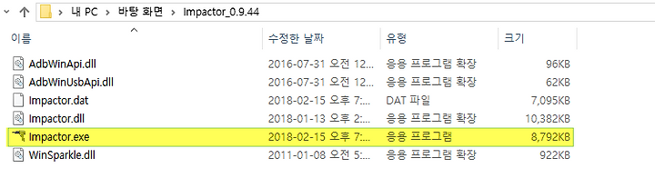 4. 압축 해제한 폴더에서 Impactor.exe 파일 실행